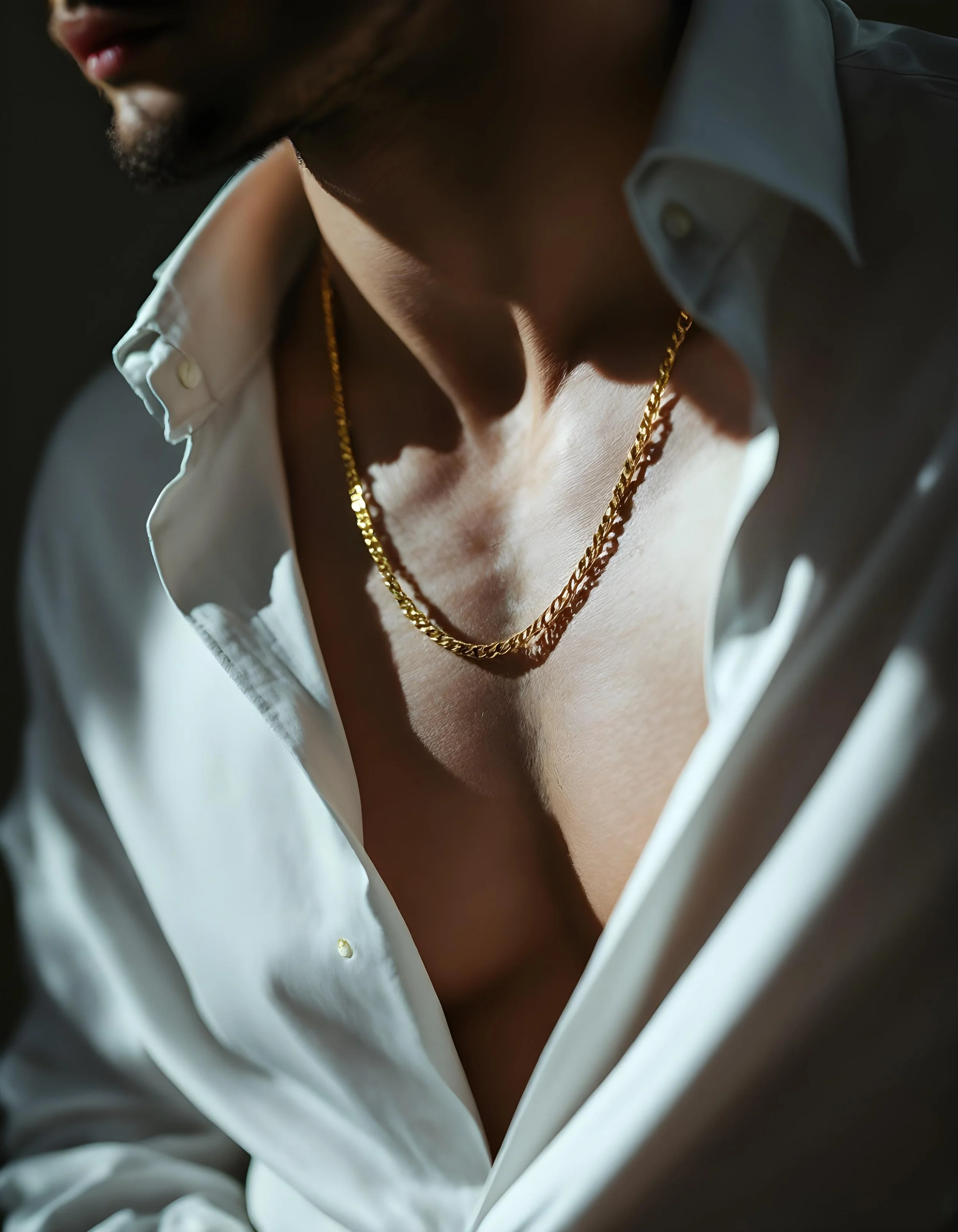 Not all chains are meant to be seen. In ultra-wealthy circles, the most stylish men favour fine, slim gold or platinum chains worn under shirts — or delicate link bracelets layered alongside a classic watch.